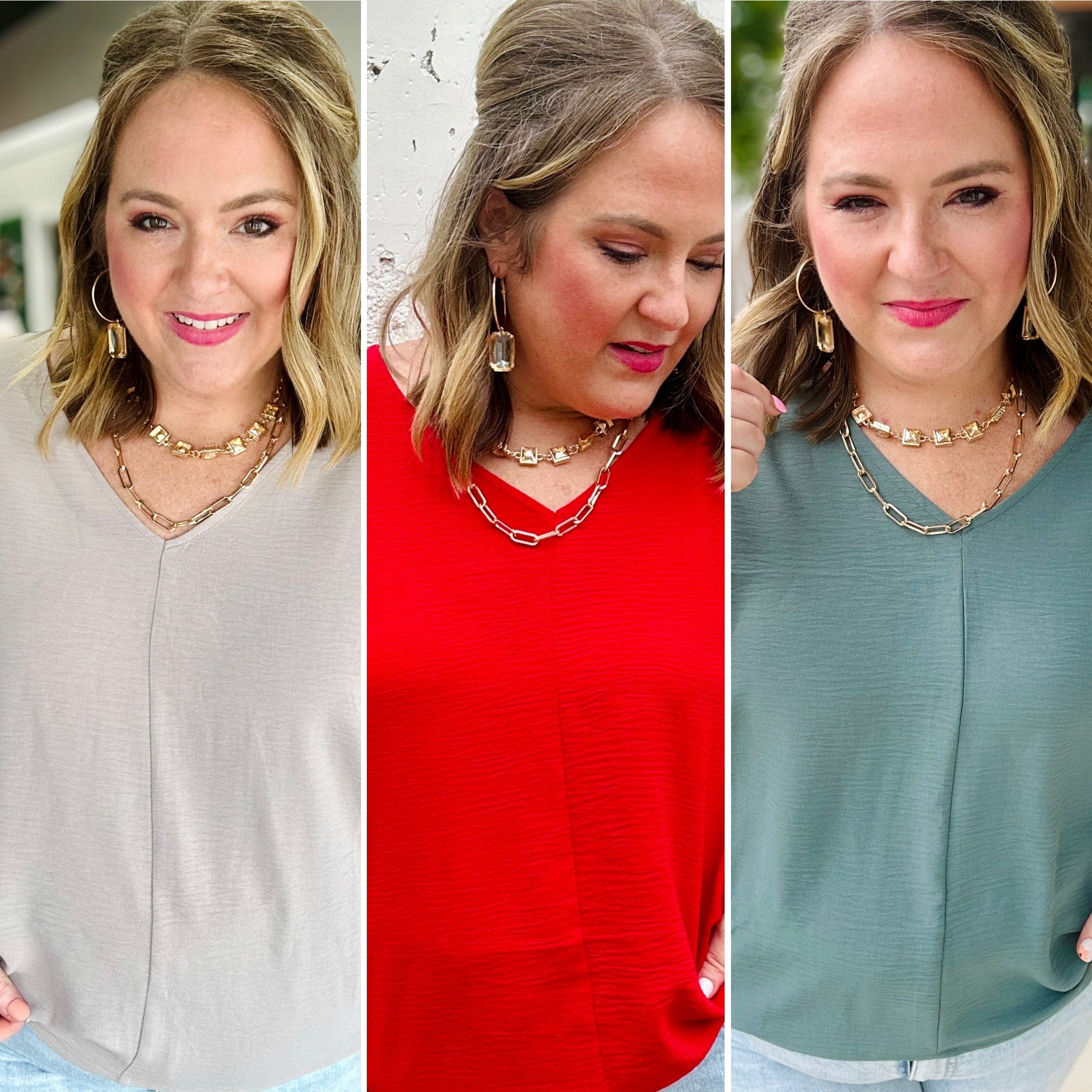 The Regina Woven Top offers a lightweight and textured woven material for a relaxed, but stylish look. Available in tan, red, and dusty teal, this top features a dolman fit and slight high low hemline for a comfortable and versatile fit. Made with lightweight polyester material, it is perfect for any occasion.